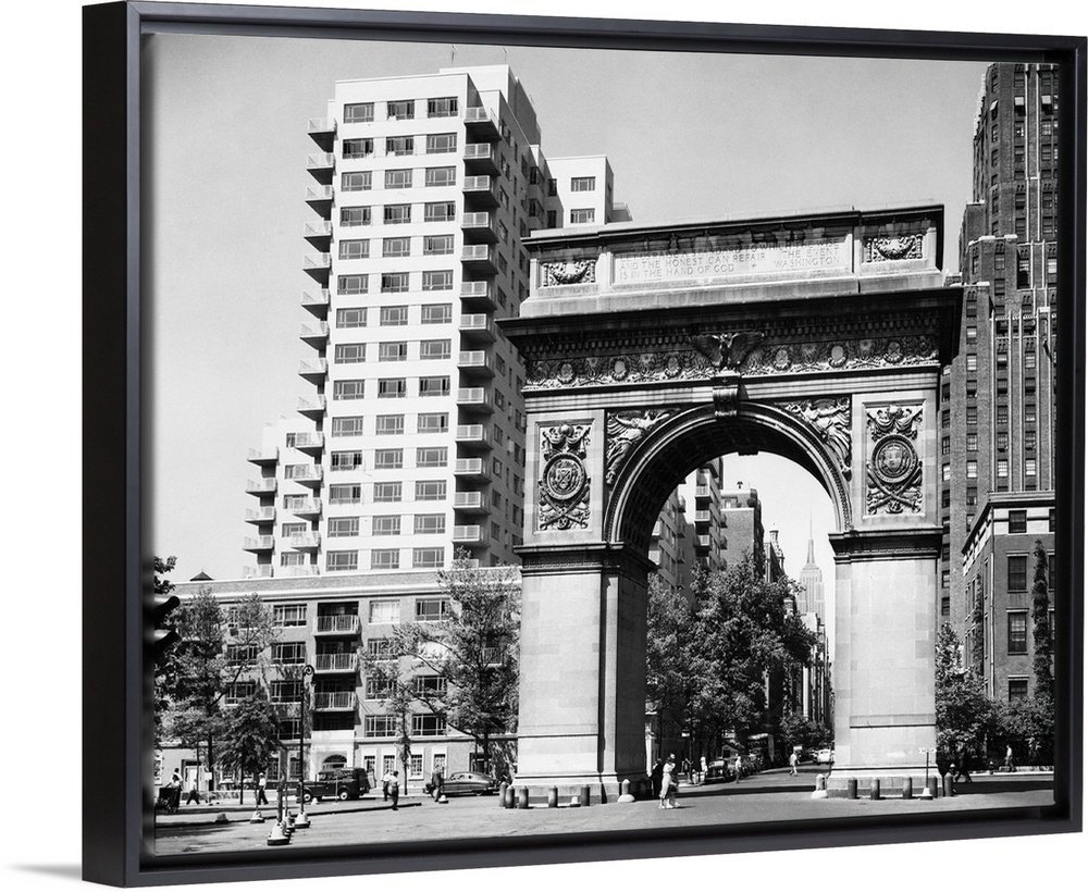 <p>View through the Arch in Washington Square Park in New York City. Photograph by C.T. Miller, 1952.</p>