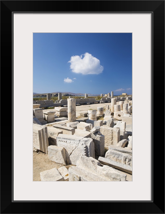 <p>Archaeological remains near the harbour, Delos, UNESCO World Heritage Site, Cyclades Islands, South Aegean, Greek Islands, Greece, Europe</p>
