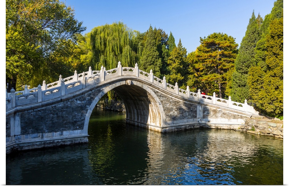 <p>View of arched bridge on Kunming Lake at Yihe Yuan, The Summer Palace, UNESCO World Heritage Site, Beijing, People's Republic of China, Asia</p>