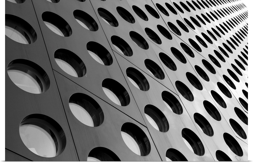 <p>Black and white dotted architecture abstract with perspective.</p>
