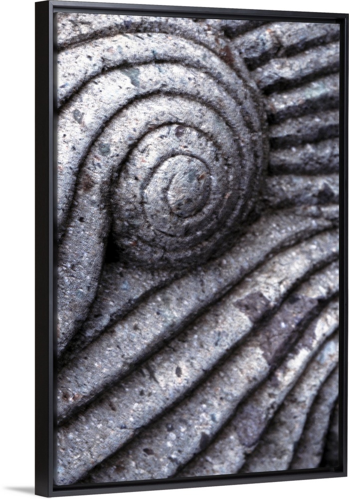 <p>Very closely taken photograph of a piece of architecture that has ridges and swirls.</p>
