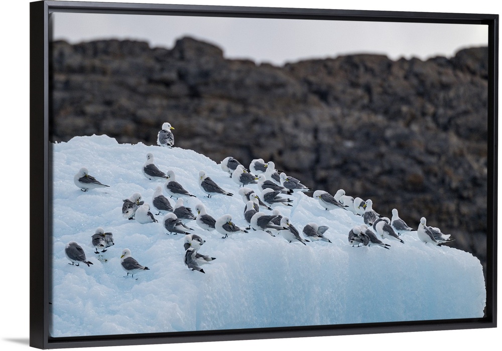 <p>Arctic birds on an Iceberg on Belcher island, Devon island, Nunavut, Canadian Arctic, Canada, North America</p>