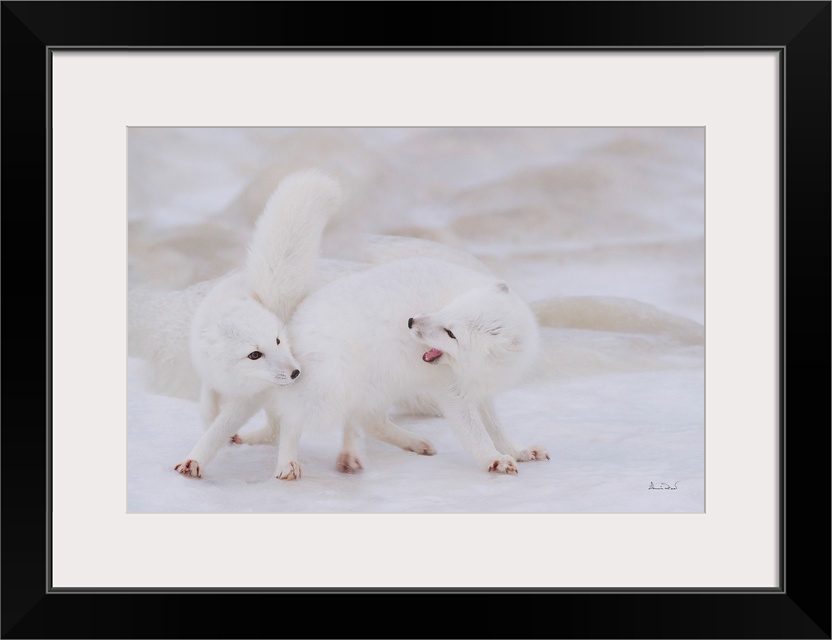 <p>Arctic Fox (Vulpes lagopus) pair courtship, at Seal River Lodge on coastal Hudson Bay, Churchill, MB, Canada.</p>