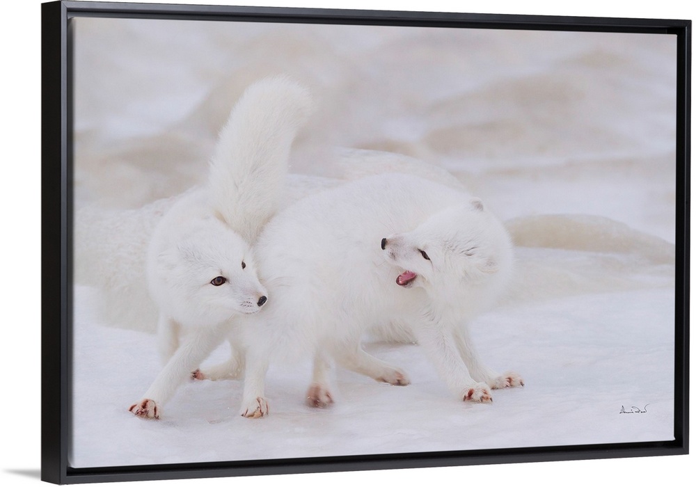 <p>Arctic Fox (Vulpes lagopus) pair courtship, at Seal River Lodge on coastal Hudson Bay, Churchill, MB, Canada.</p>