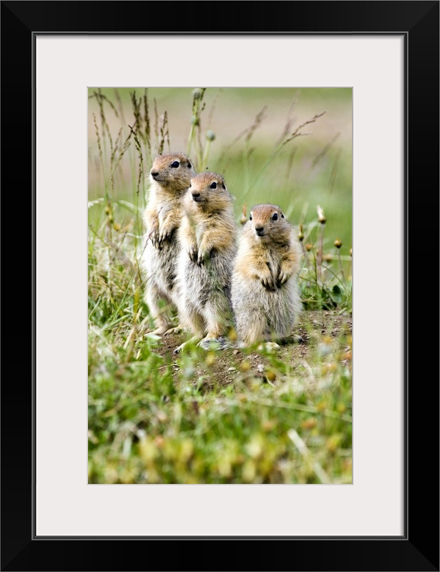 <p>Three juvenile Arctic Ground Squirrels look out for predators. Arctic National Wildlife Refuge, Alaska.</p>