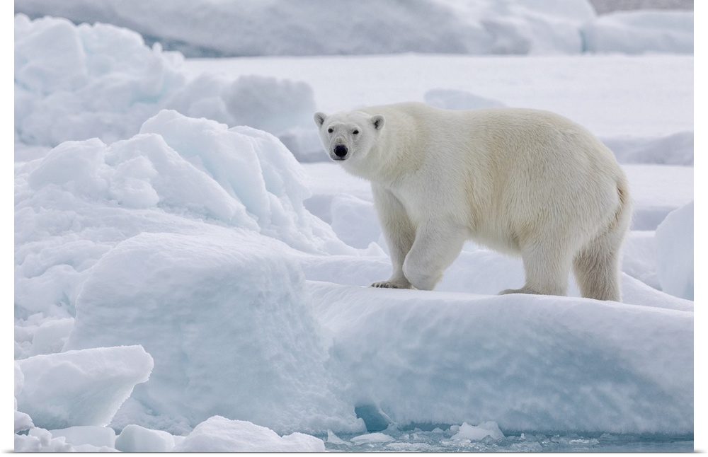 <p>Arctic, North Of Svalbard, Portrait Of A Polar Bear Walking On The Pack Ice</p>