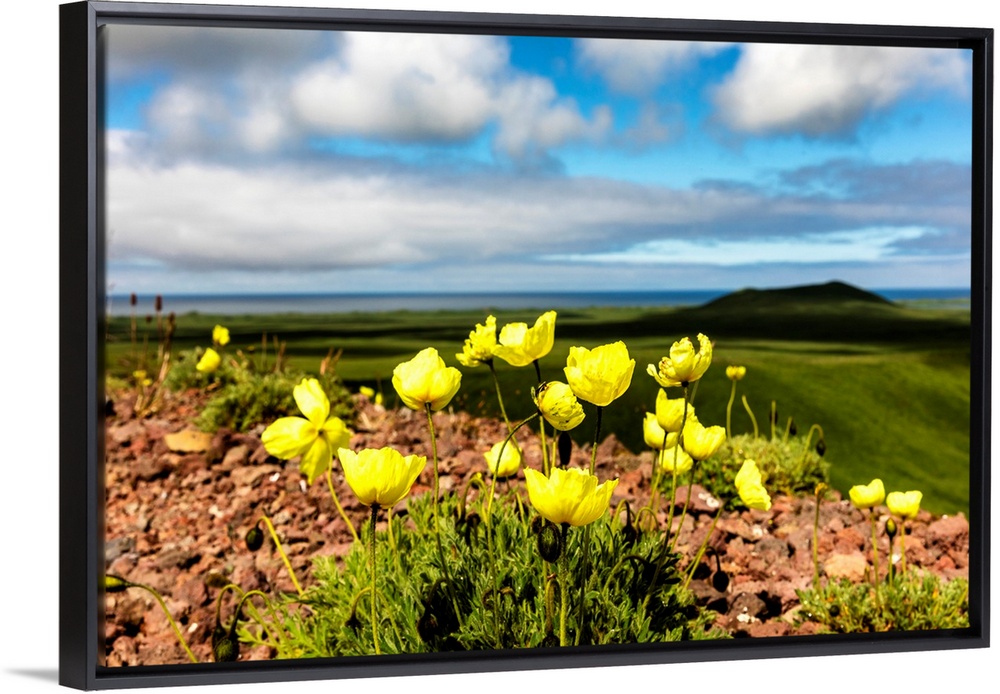 <p>Arctic poppy (Papaver radicatum) grows from the volcanic soil of St. Paul Island in the Pribilofs in Southwest Alaska, St. Paul Island, Pribilof Islands, Alaska, United States of America.</p>
