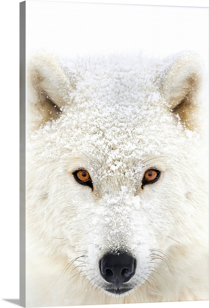 <p>Arctic wolf (Canis lupus arctos) portrait; Montebello, Quebec, Canada</p>