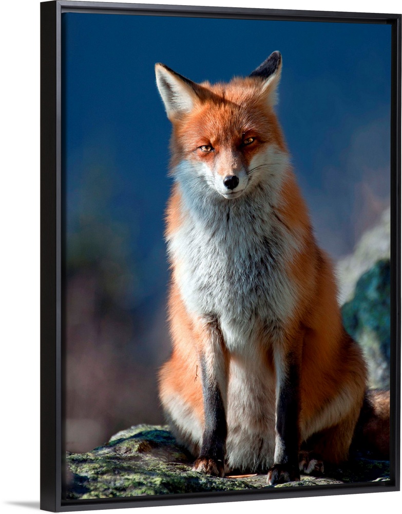 <p>A curious red fox sitting on a rock in the wilderness.</p>
