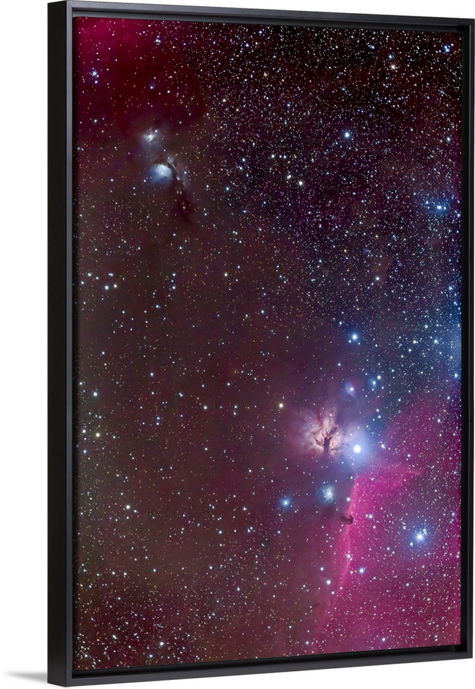 <p>The area around the Belt of Orion, with the Horsehead and Flame Nebulae at bottom flanking the bright star Zeta Orionis, also known as Alnitak, with Messier 78 at upper left.</p>