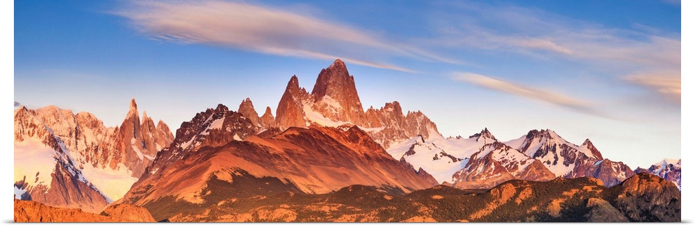 <p>Argentina, Patagonia, El Chalten, Los Glaciares National Park, Cerro Torre and Cerro Fitzroy Peaks at the first light of dawn</p>