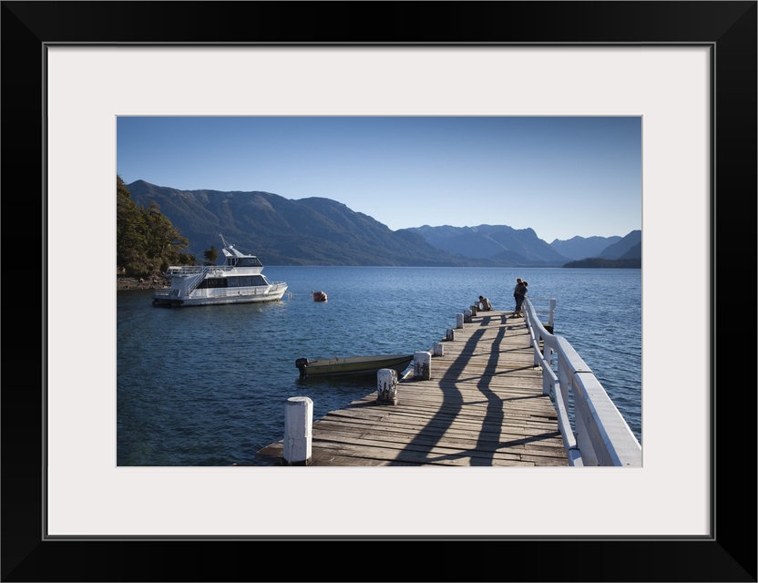 <p>Argentina, Neuquen Province, Lake District, Road of the Seven Lakes, Villa La Angostura, Lake Nahuel Huapi, pier, Brava Bay</p>