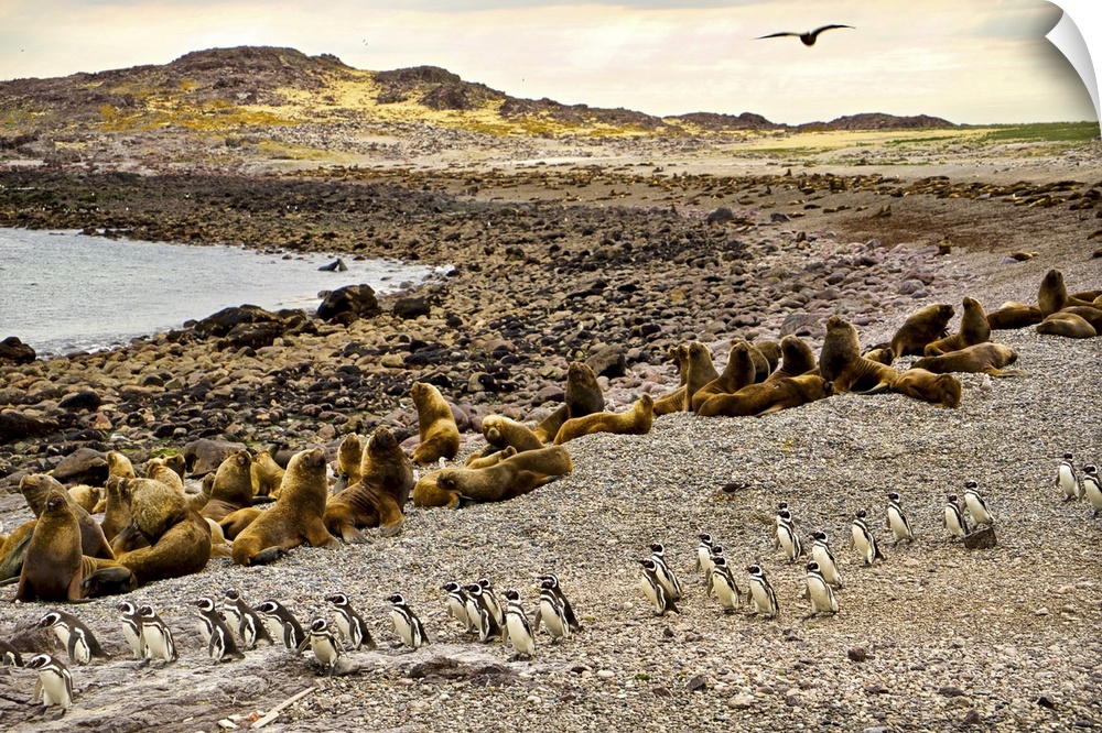 <p>Argentina, Santa Cruz, Puerto Deseado: Isla Pinguino - Penguin Island: Sea Lions And Magellanic Penguins</p>