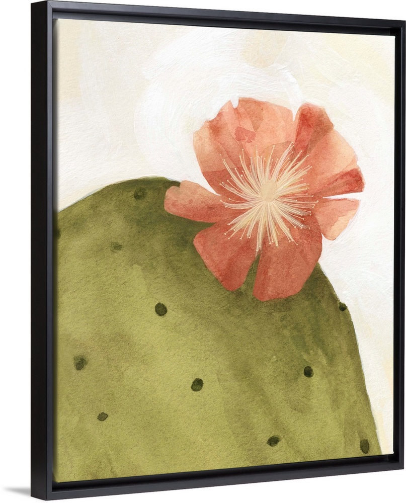<p>Contemporary painting of a bloom on the top of a cactus on a neutral backdrop.</p>