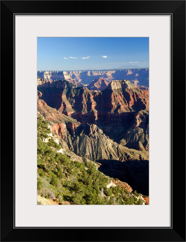 <p>North America, USA, Arizona, Grand Canyon National Park, North Rim. Canyon view with mountains of Flagstaff, Arizona in the distance.</p>