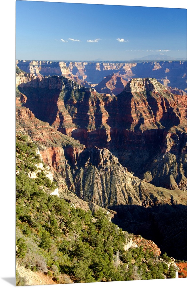 <p>North America, USA, Arizona, Grand Canyon National Park, North Rim. Canyon view with mountains of Flagstaff, Arizona in the distance.</p>
