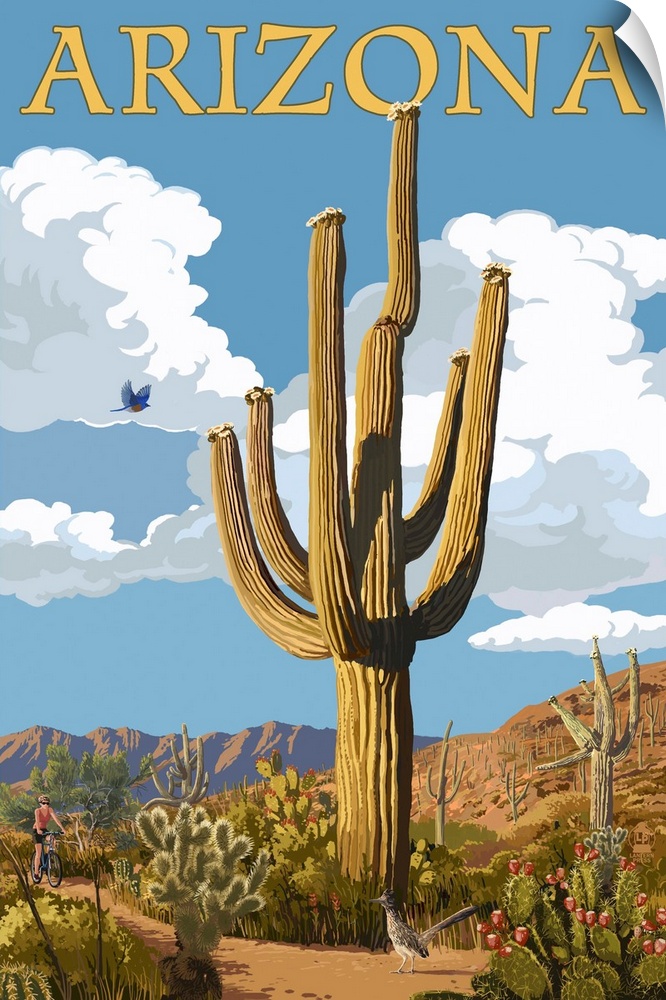 Art Cactus Landscapes Desert Lantern Press United States Arizona Travel Posters