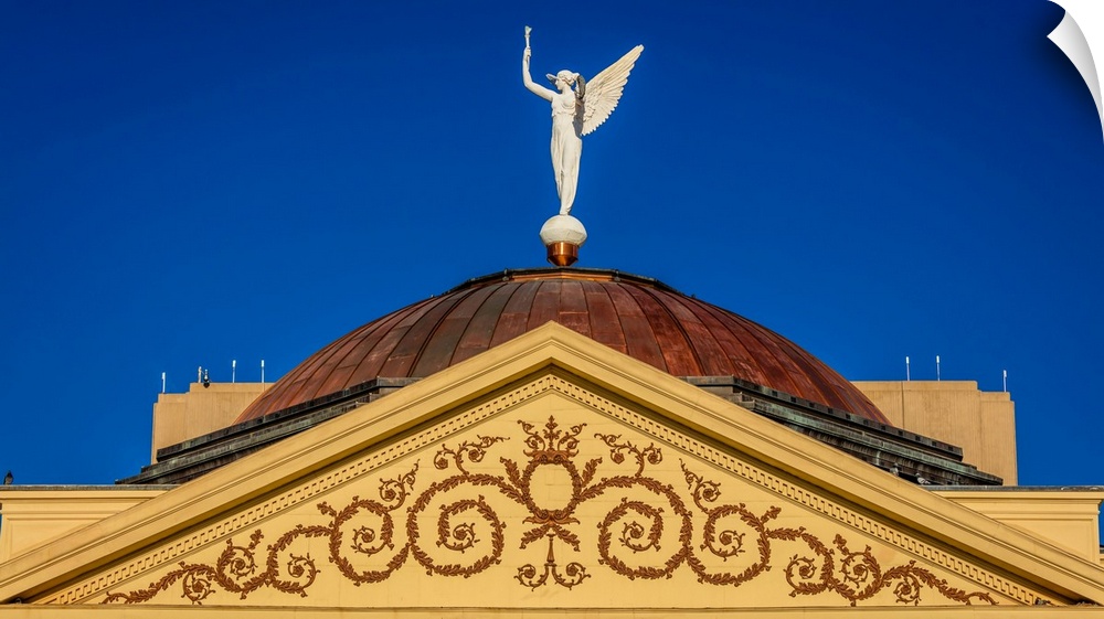<p>Arizona state capitol building at sunrise, features winged victory, statue, phoenix, arizona.</p>