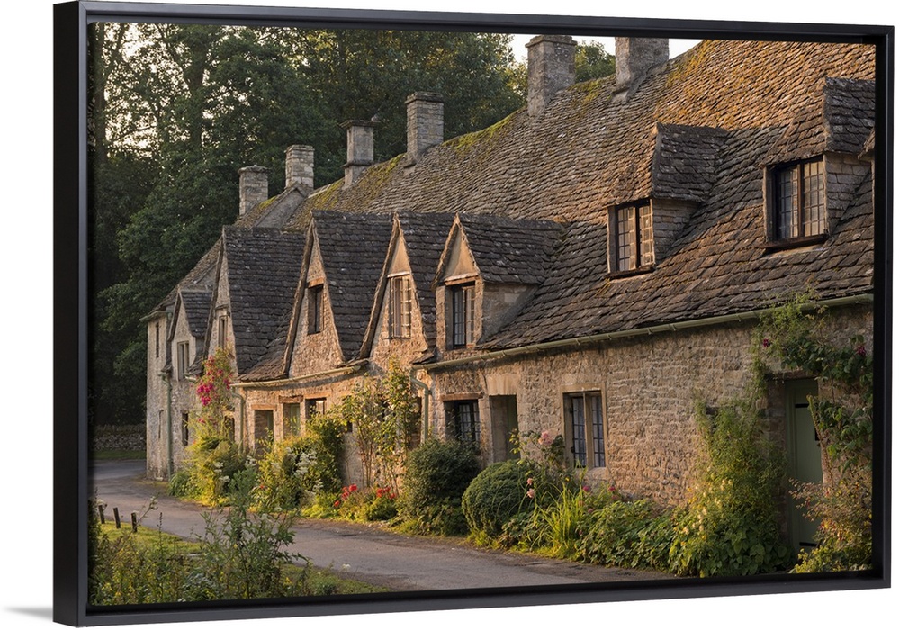 <p>Picturesque cottages at Arlington Row in the Cotswolds village of Bibury, Gloucestershire, England. Summer (July)</p>