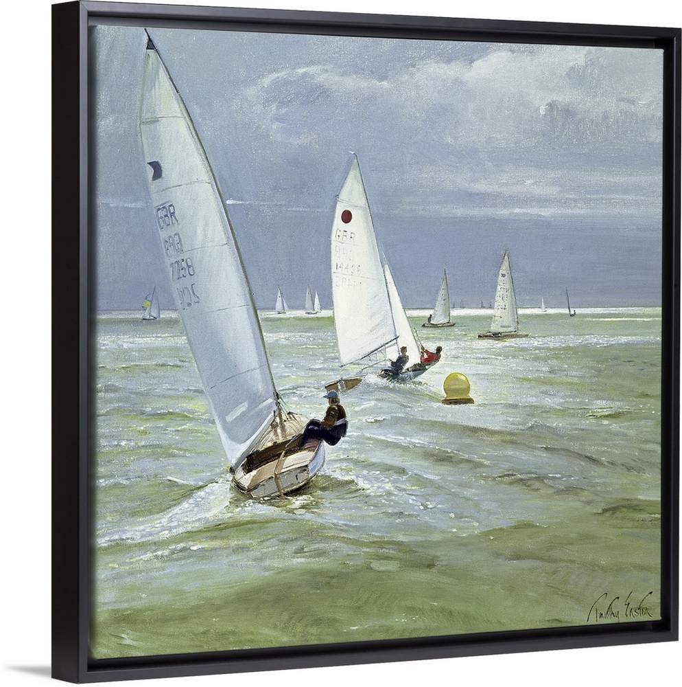 <p>An oil on canvas with several sail boats in the water with those closest to the foreground being sailed by boys.</p>