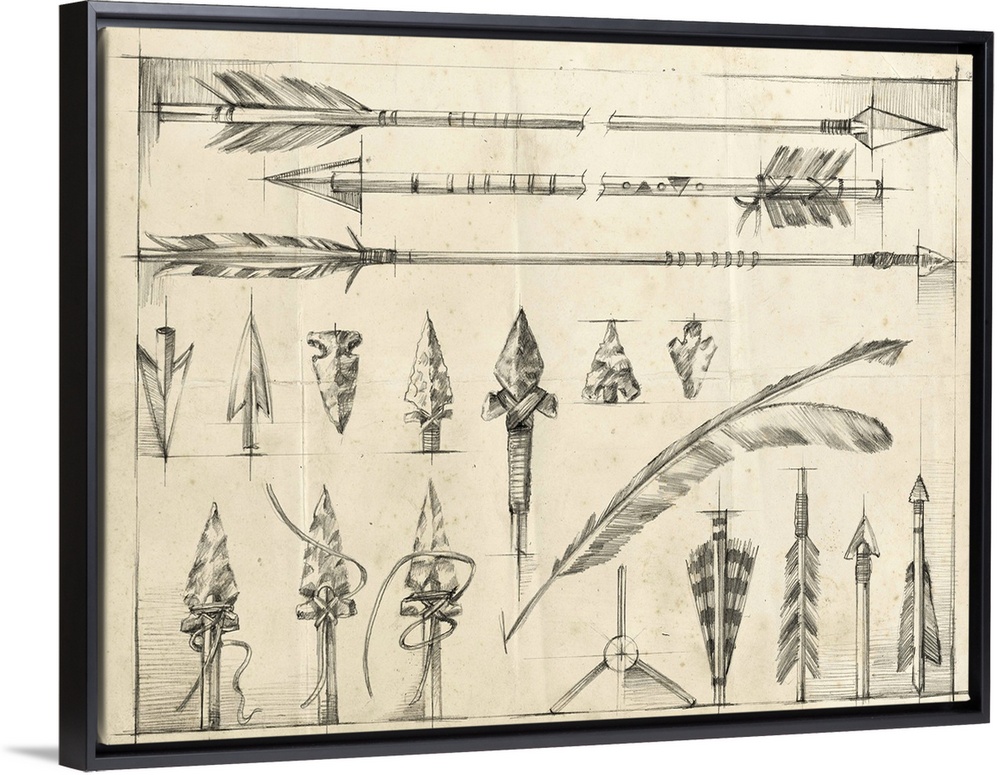 <p>Detailed pencil illustration of several arrows and arrowheads.</p>