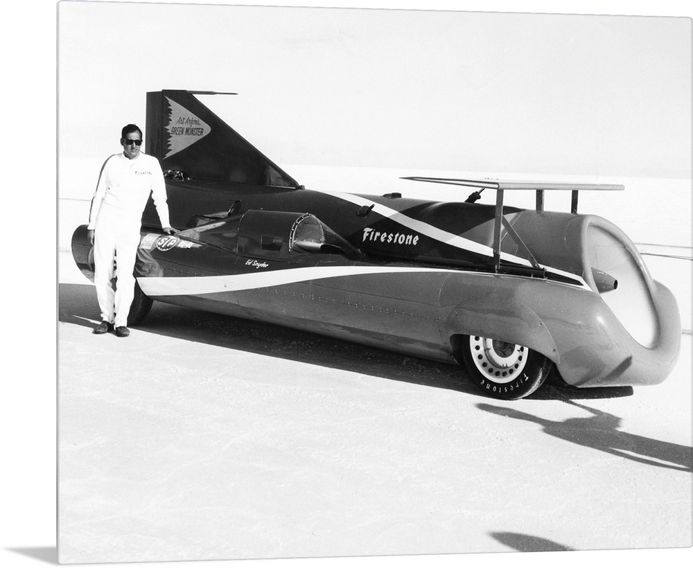 <p>Art Arfons on the Bonneville Salt Flats with his 'Green Monster' jet car. He would set three world land speed records between 1964 and 1965.</p>
