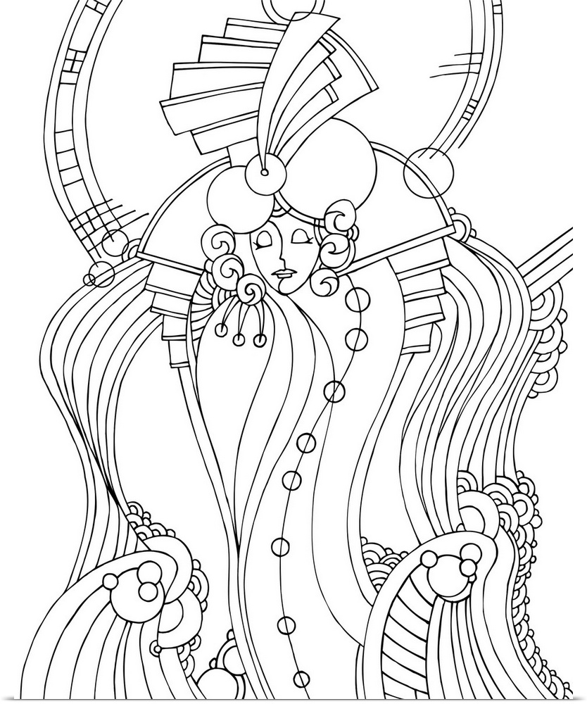 <p>Black and white line art of an Art Deco style design.</p>