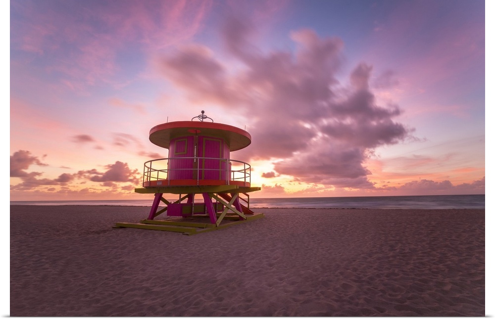 <p>Art Deco style Lifeguard hut on South Beach, Ocean Drive, Miami Beach, Miami, Florida, United States of America, North America</p>
