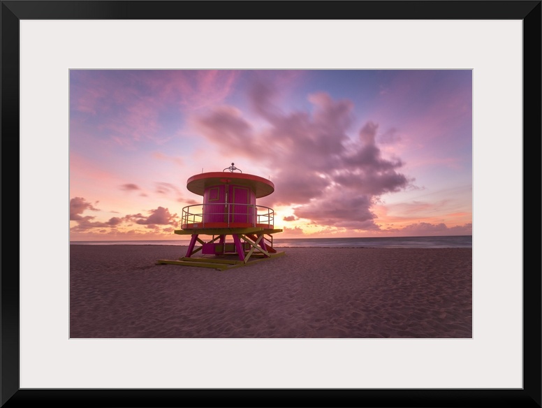 <p>Art Deco style Lifeguard hut on South Beach, Ocean Drive, Miami Beach, Miami, Florida, United States of America, North America</p>