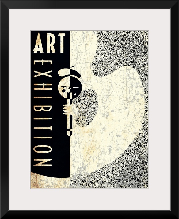 <p>Vintage black and sepia wall art exhibition poster with graphic Bauhaus artist image and artist palette.</p>