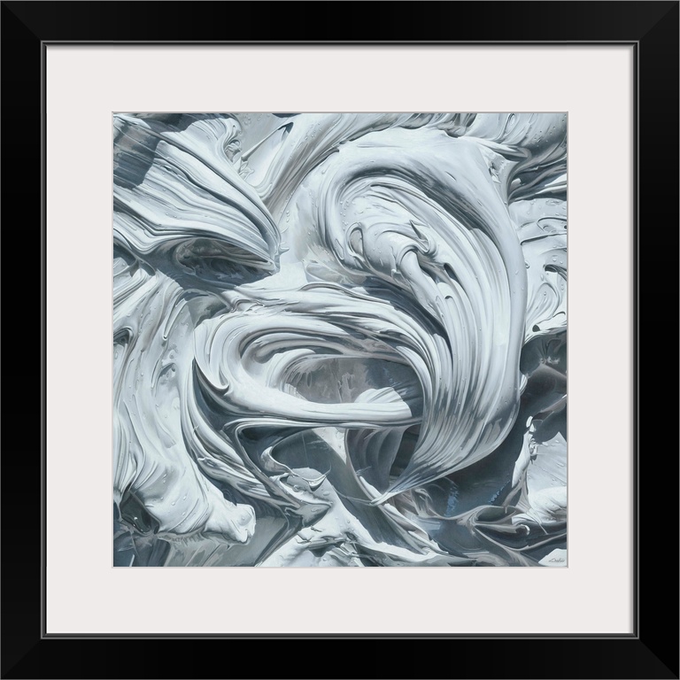 <p>Contemporary vivid realistic still-life painting of swirl and smeared white paint, resembling dried plaster.</p>