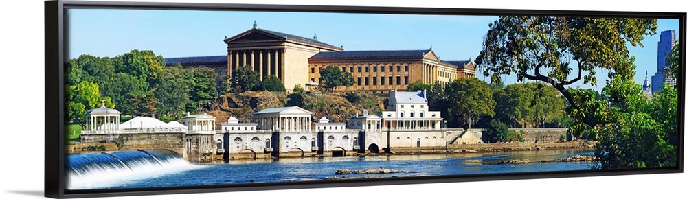 <p>Wall docor of an art museum in Philadelphia by the water with a waterfall flowing on the left.</p>