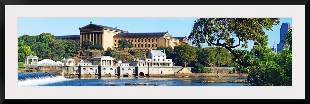 <p>Wall docor of an art museum in Philadelphia by the water with a waterfall flowing on the left.</p>