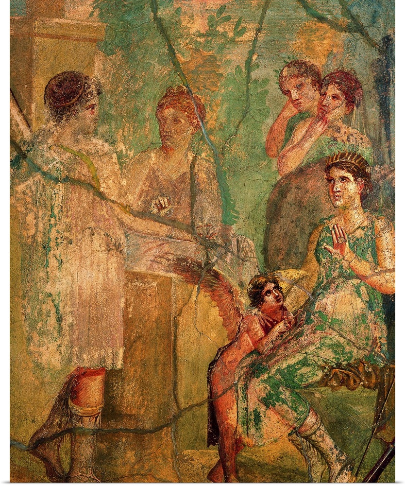 <p>Artemis and Calisto, by unknown artist, 45-79, 1st Century A.D., ripped fresco, 107 x 90 cm - Italy, Campania, Naples, National Archaeological Museum, Room LXVI, inv. 111441. Whole artwork view. Calisto discovers her prolific womb, outcoming her love for Zeus, in front of Artemis; the goddess, sitting on the right and recognizable for the rayed cown, looks at her attentively, while a cupid rests against her leg; on the left, a female figure wearing a short tunic and leather sandals; three other female figures observe the scene carefully; from Casa di Cornelius Diadumenus. - Naples, Italy - 2008/Luigi Spina/Electa/Mondadori PortfolioMondadori Portfolio courtesy of MiBAC/Authorization required for not editorial use. Please contact Mondadori Portfolio - 2008/Luigi Spina/Electa/Mondadori Portfolio/Everett Collection - (1873371)</p>