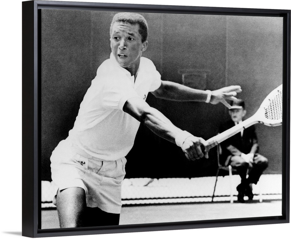 <p>American tennis player. Ashe playing for UCLA in a match against Mike Belkin of the University of Miami, June 1965.</p>