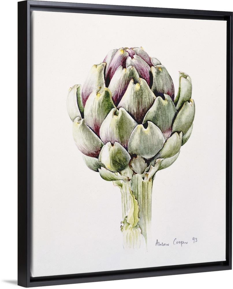 Art Kitchen Wall Art Plants and Flowers Alison Cooper Organic Minimalism Decorative Art Food and Drink Food Vegetables Artichoke Green Wall Art Painting Watercolor