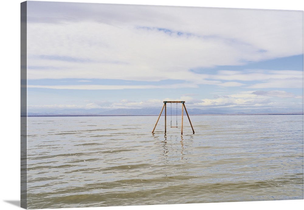 <p>Artist installed swing set at Bombay Beach in the Salton Sea; Bombay Beach, California, United States of America</p>