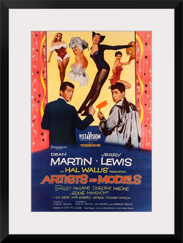 <p>ARTISTS AND MODELS, US poster art, from left: Dean Martin, Shirley MacLaine, Jerry Lewis, 1955.</p>