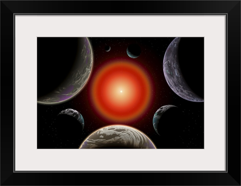 <p>Artist's concept of the Trappist-1 star system located in the constellation of Aquarius. This star system has seven earth-like exoplanets in orbit around its dwarf star.</p>