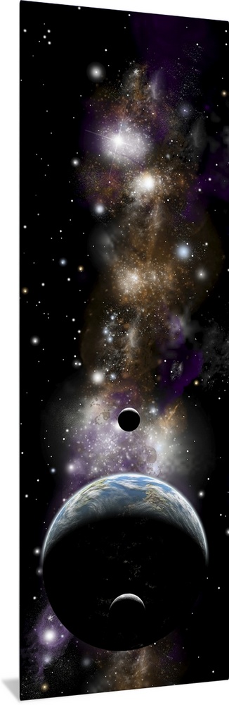 <p>Artist's depiction of an Earth-like planet with a pair of moons in orbit.</p>