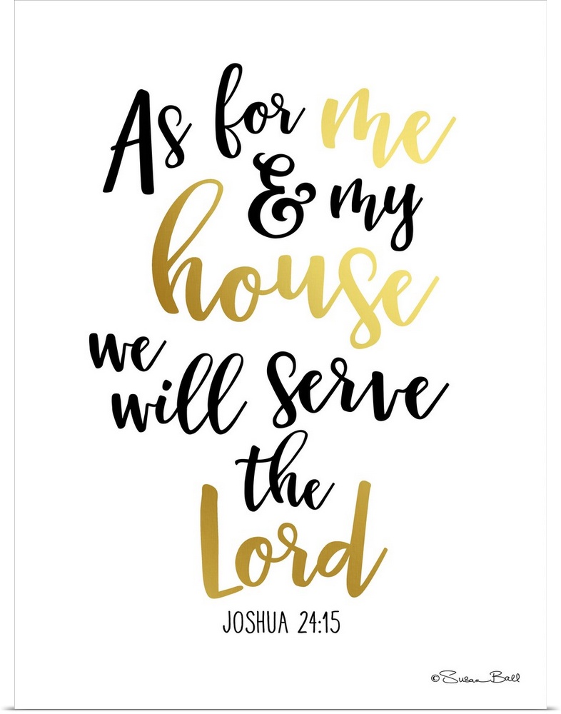 <p>Bible verse Joshua 24:15 in black and gold script on white.</p>