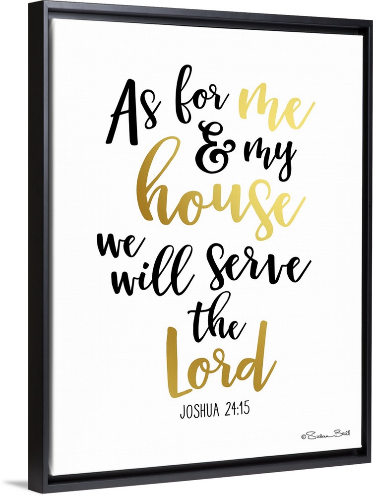 <p>Bible verse Joshua 24:15 in black and gold script on white.</p>