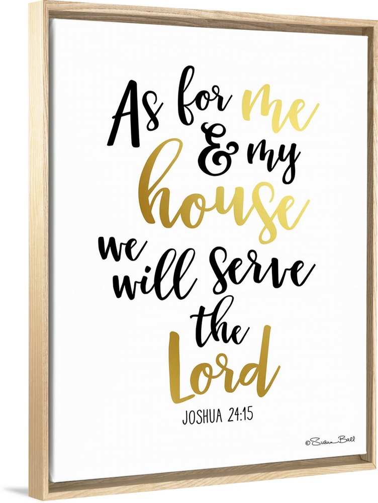 <p>Bible verse Joshua 24:15 in black and gold script on white.</p>
