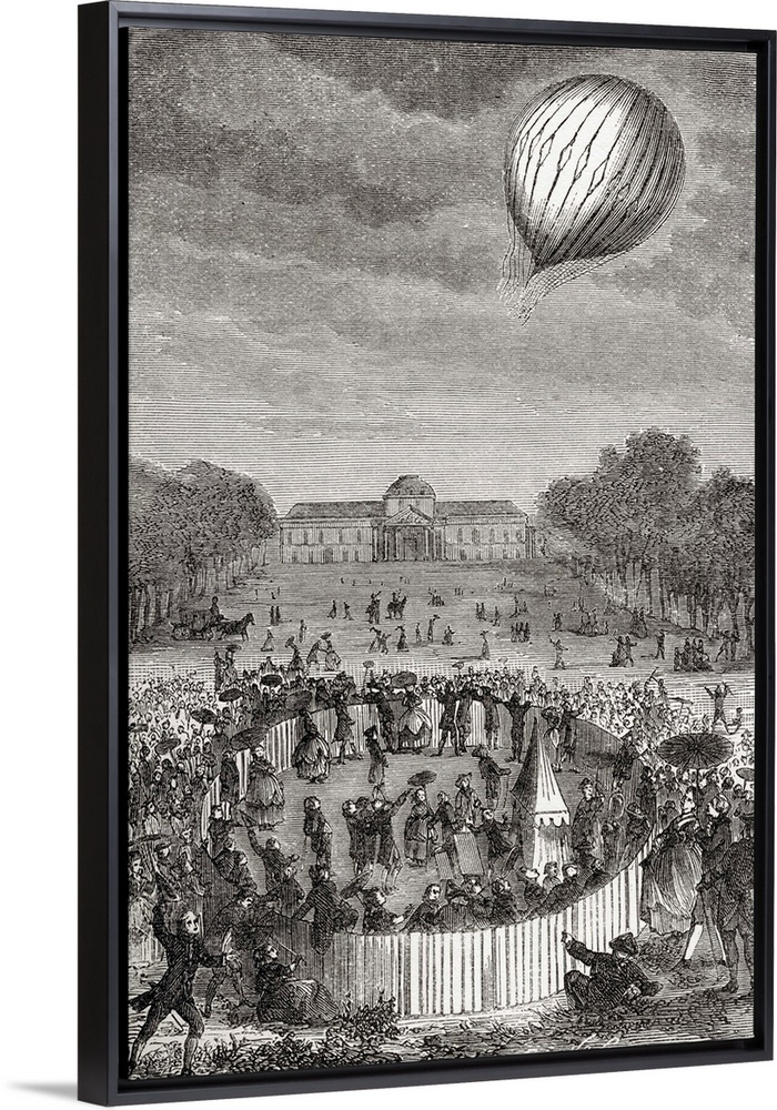 <p>Ascent of Charles balloon over the Champ de Mars, Paris, France, August 27 1783. Jacques Alexandre Cesar Charles (1746 - 1823), French chemist physicist and aeronaut. From the book "Wondeful Balloon Ascents or The Conquest of the Skies," published c. 1870.</p>