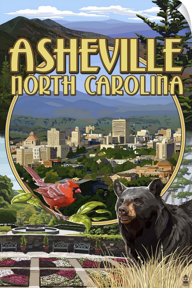 <p>Retro stylized art poster of a montage of images from Asheville North Carolina.</p>