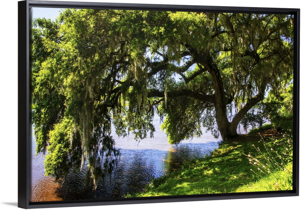 <p>Landscape photograph of a Water Oak tree covered in Spanish Moss leaning over the bank of the Ashley River, SC.</p>