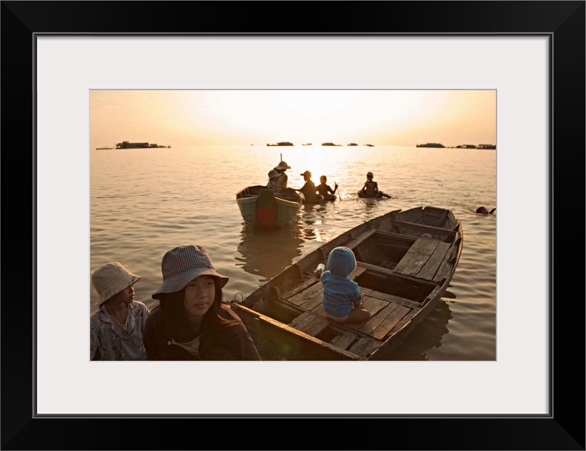 <p>Cambodia, Kampuchea, Siemreab, Siem Reap, Children on boat at floating Village of Chong Kneas, TONLE SAP LAKE</p>