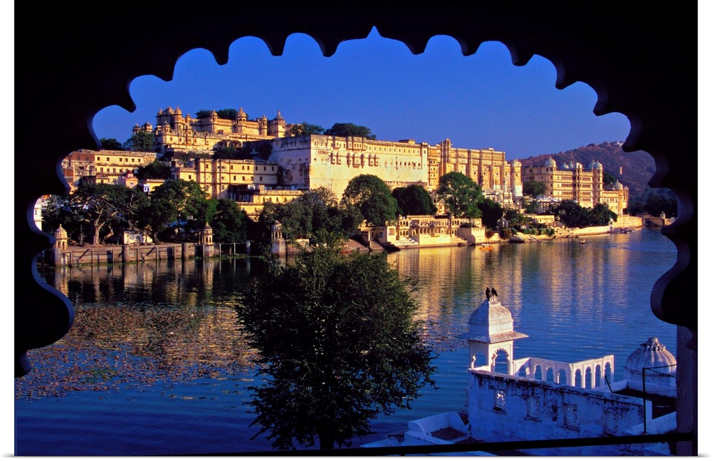 <p>Vista dell'imponente City Palace. Situata sulle rive del Lago Pichola, Udaipur .. stata definita "la Venezia d'Oriente".</p>