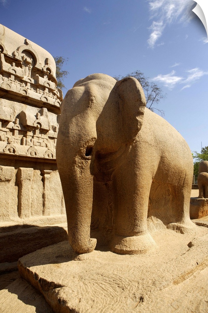 <p>India, Tamil Nadu, Mahabalipuram (Mamallapuram) 'The Five Rathas'</p>