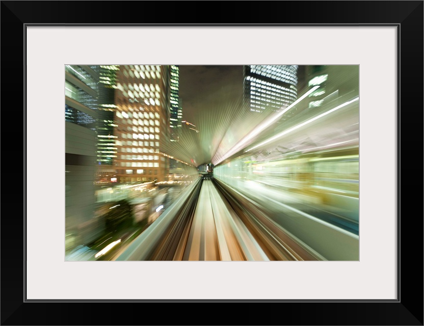 <p>Asia, Japan, Honshu, Tokyo, POV blurred motion of Tokyo buildings from a moving train</p>